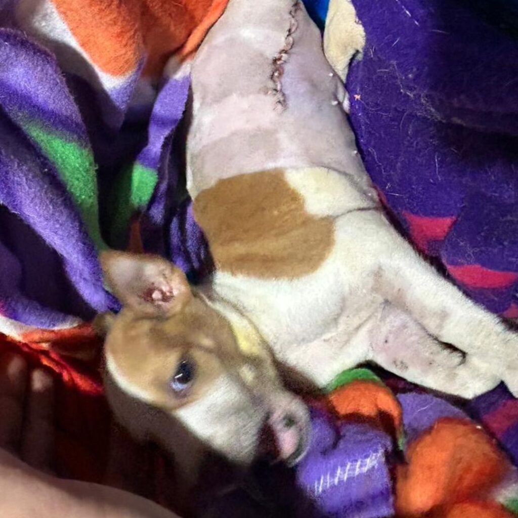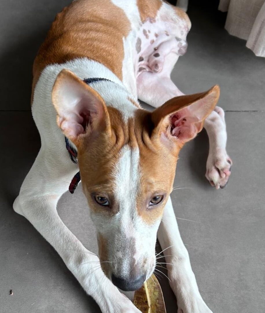 Mango was a little puppy when we rescued him through our volunteer. His leg was damaged due to accident which resulted in a maggot wound. He had lost his leg complete from the knee joint when we rescued him. We had to do an amputation and the Dr at Happy Tails helped us a lot. He has now been adopted by our Founder Gaurav and is growing up to be a happy doggy.